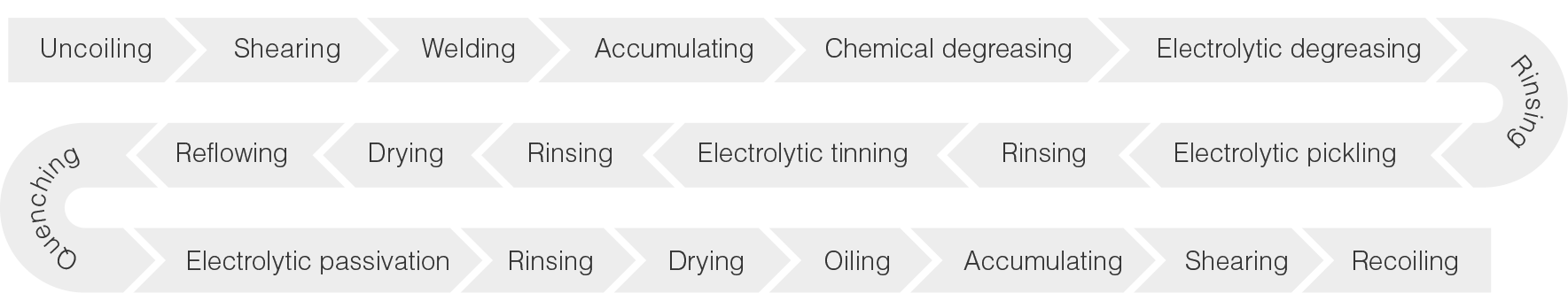 Electrolytic tinplates are characterized with precise coatin thickness control, shinny and compact coating, good corrosion resistance and outstanding processablity, making them better materials for both wet and dry chemical paints, packages of food, beverages and the packages of edible oil.