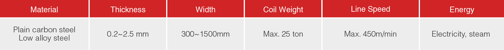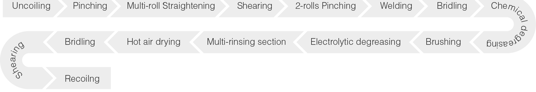 Degreasing line is used to remove rolling oil, residual iron and other pollutants in order to control residual carbon and iron effectively; meanwhile the line can prevent the defects such as strip adhesion during annealing process. The strip after degreasing can be used as teh raw material for food-grade electrolytic tinplates.
